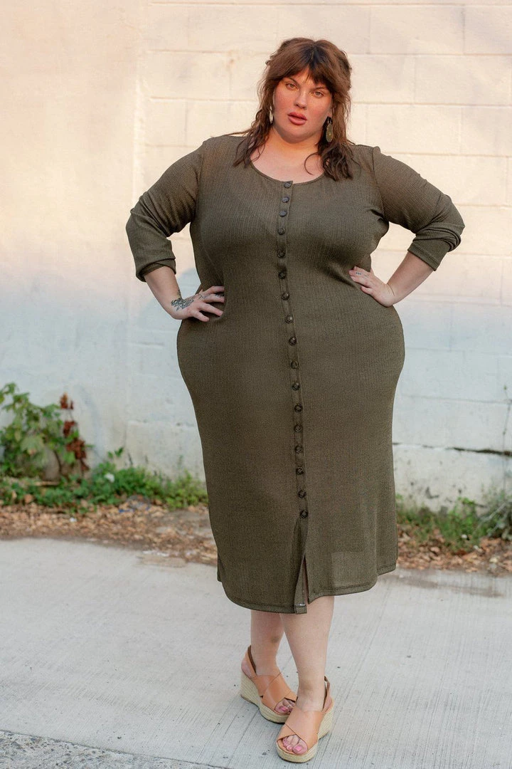 This iridescent, super slinky rib-knit dress drapes beautifully, falling away with a loose, effortless fabric that has incredible stretch and recovery. The Ila dress is a button-down body con dress; wonderful for traveling and dressing for all occasions.