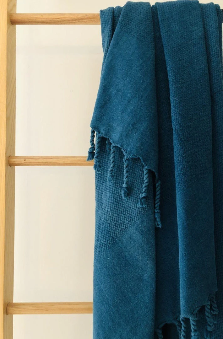 The Arete throw towel can be used both in the home, beach, or as a scarf! It’s beautiful textured pattern adds layer and detail to any space.