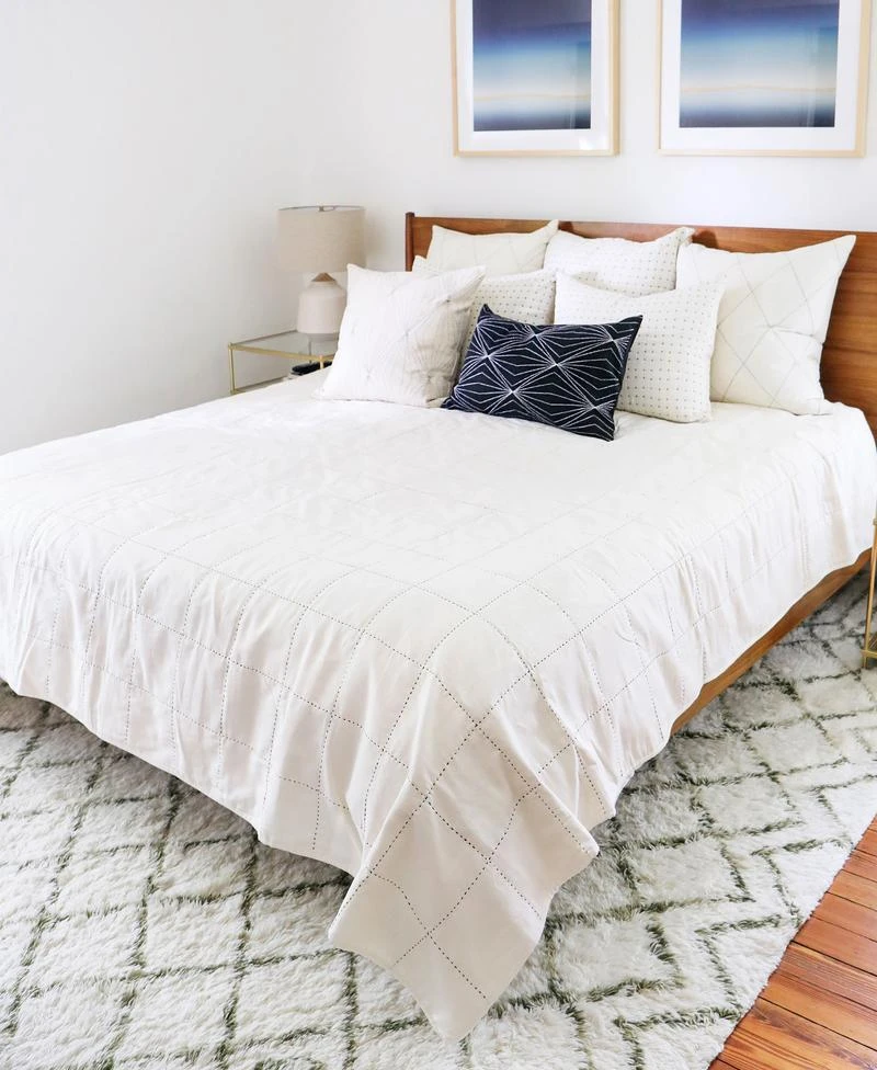 This luxurious cotton bedding features a stunning geometric embroidery pattern. The buttery soft feel of this quilt will add warmth and texture to your bedroom. Drape it on your bed to add artistic, modern flare in your home.