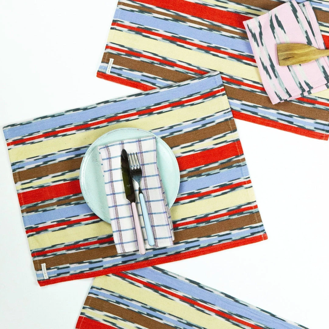 The Xela Jaspe Placemat is a colorful addition to bring joy to your table setting. Create a monochrome design with other table linens in the Xela line, or mix and match for a colorful, dynamic display. Each placemat is handcrafted in Guatemala using traditional footlooms.