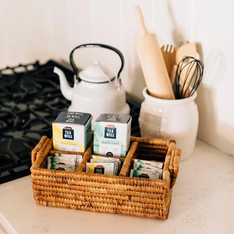 This tray can be used to serve, store, and sort all kinds of things around your home. Artisans use a specially designed, handmade needle to thread dried banana leaves around the banana stalks. The result is a super-sturdy tray that’s great for carrying cups.
