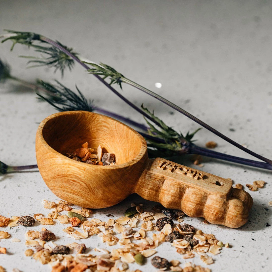 The Ruby Wooden Measuring Cup Set features raised measurements and beaded detail handle edging that will not only help you cook up precious memories but also display the artistry of woodcarver artisans a world away. Finished with all-natural beeswax polish.