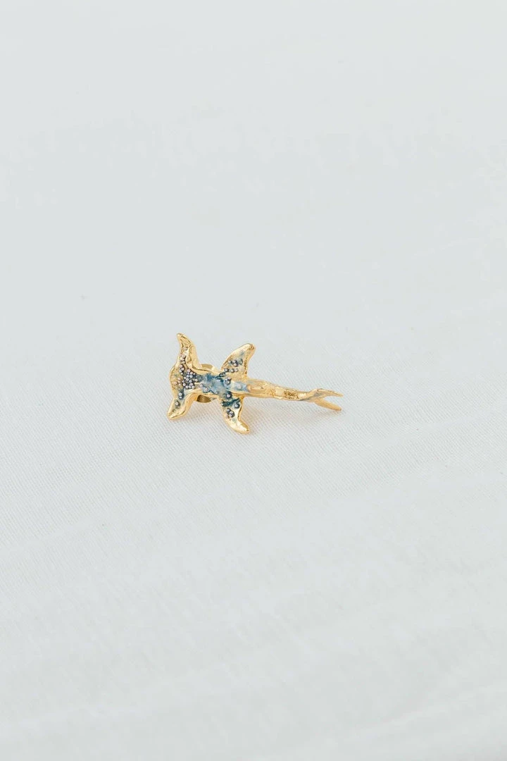This unique brooch is inspired by the colors and textures of the ocean. Add a bit of shine to any outfit with this handcrafted, responsibly sourced piece. The hammerhead shark has a T-shaped head causing his eyes to look in different directions. He can see what’s going on around him without having to turn.