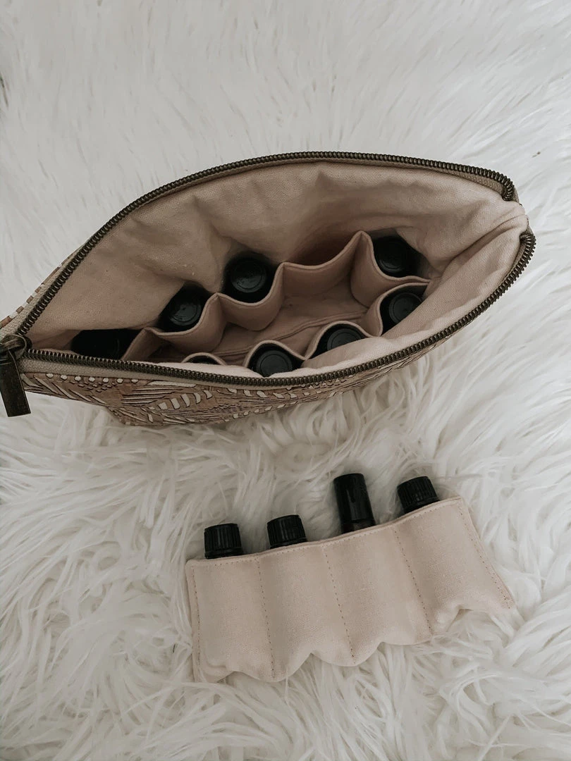 You don’t have to let those delicate essential oil bottles roll around in your purse anymore. This padded bag gives you access to 14 bottles with 10 open bottom pockets and a removable insert that holds an additional 4 bottles.