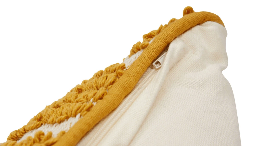 Add some pattern and color to your space with this cheery, tufted throw pillow.