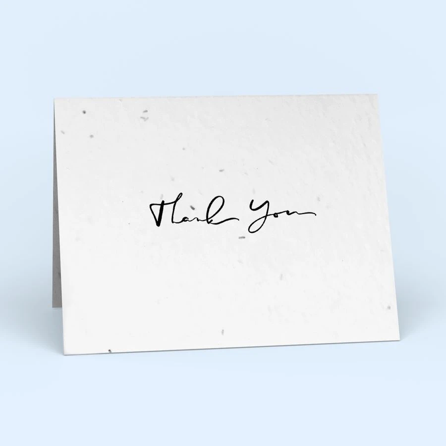 Keep sustainably made thank you notes on hand with this 10 pack. Watch your recipients light up when they realize that your meaningful words can grow a garden of wildflowers. Printed to order to reduce waste. Cards contain a non-invasive wildflower seed mix that grows Alyssum, Catchfly, Siberian Wallflower, Black-Eyed Susan, and Baby Blue Eyes.