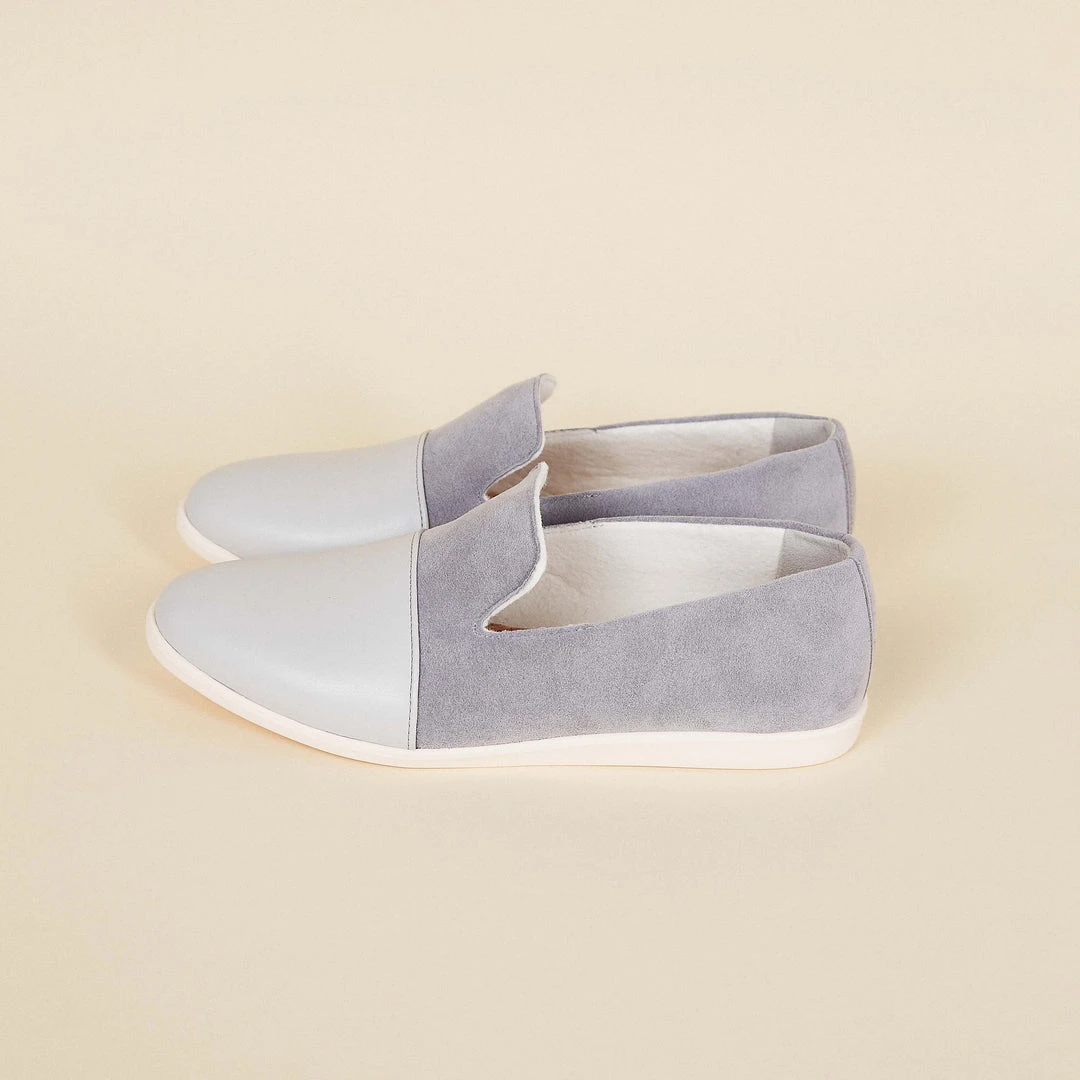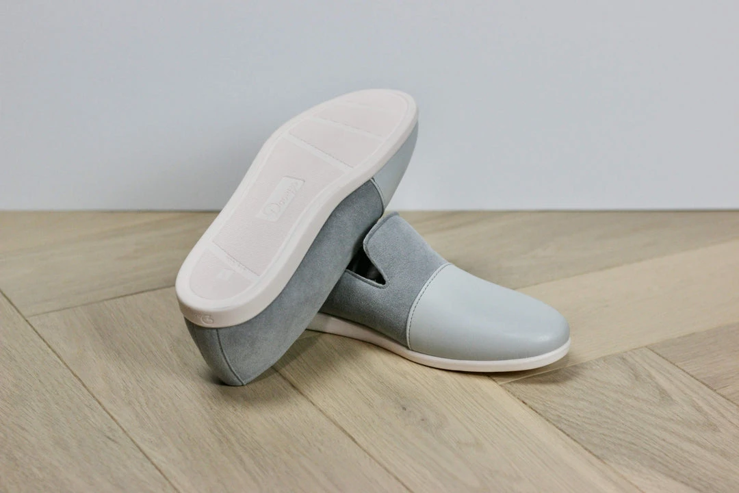 Meet the ultimate house slipper. These cool-toned house shoes are a chic and neutral companion to any outfit. Effortlessly dress them up or down for wherever the day takes you at home. These slippers feature a vegan apple leather upper, recycled polyester suede sides, recycled lining, natural latex and cork insoles, and sugarcane soles. They’re great for hardwood and tiles floors.