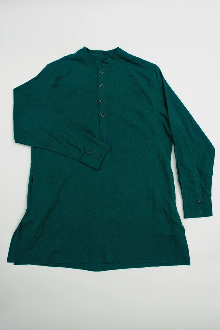 A men’s oversized heritage-style shirt in a deep green color. With a partial button-down front, mock collar, and long sleeves, the Bombay can be styled both up and down.Â