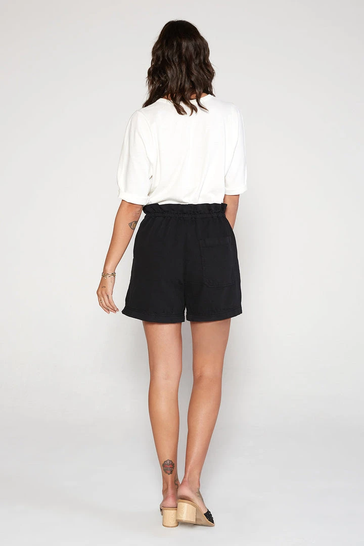 A chic black short with deep pockets and a clean drawcord to customize your fit. Natural dyes and a lofty organic twill fabric add a cool vintage texture.
