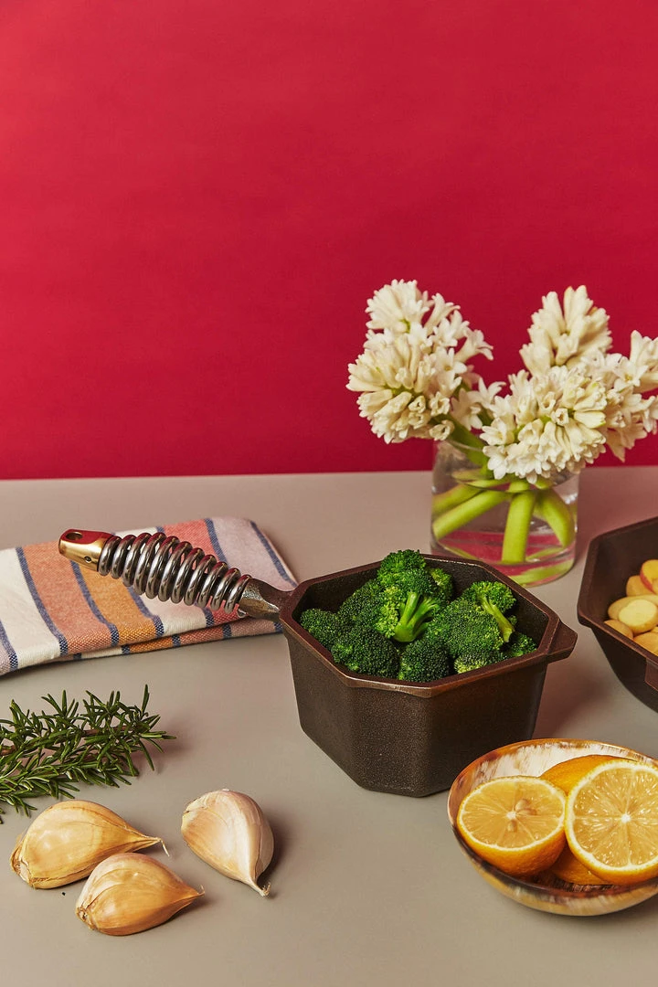 Polished surface: Stone-tumble polished to deliver an easy cleaning and durably seasoned cooking surface that acknowledges and refines the iron’s sand-cast origin.