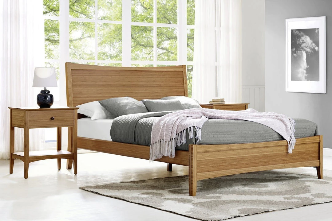 Beautifully crafted with solid bamboo, the Eco Ridge Willow one drawer nightstand features clean lines, beveled edges, and gently tapered legs to create a transitional nightstand that compliments any style. The Willow Nightstand features a solid reversed beveled top panel resting on a solid bamboo frame. The generous storage includes one solid built drawer, faced in solid bamboo, with user-friendly ball bearing extension glides. Curved base panel for added style.