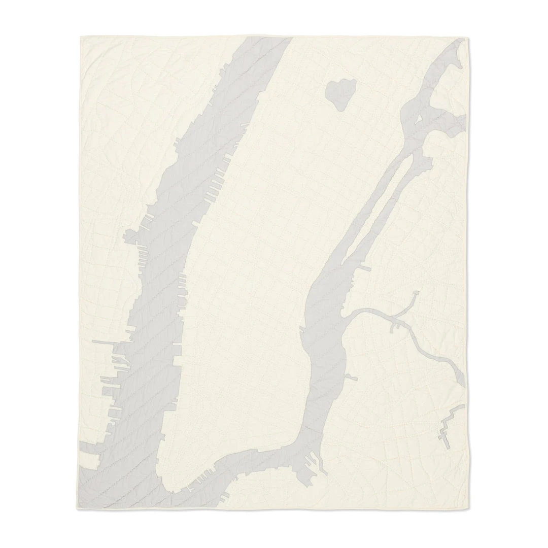 Sleep soundly with the city that never sleeps. Hand-stitched and crafted to last generations, this quilted map of New York City is an unforgettable heirloom. The map area extends from Central Park to Battery Park, and includes parts of North Brooklyn, New Jersey and Long Island City. Style it on your bed, reading chair, or couch, or hang it on the wall as a tapestry.