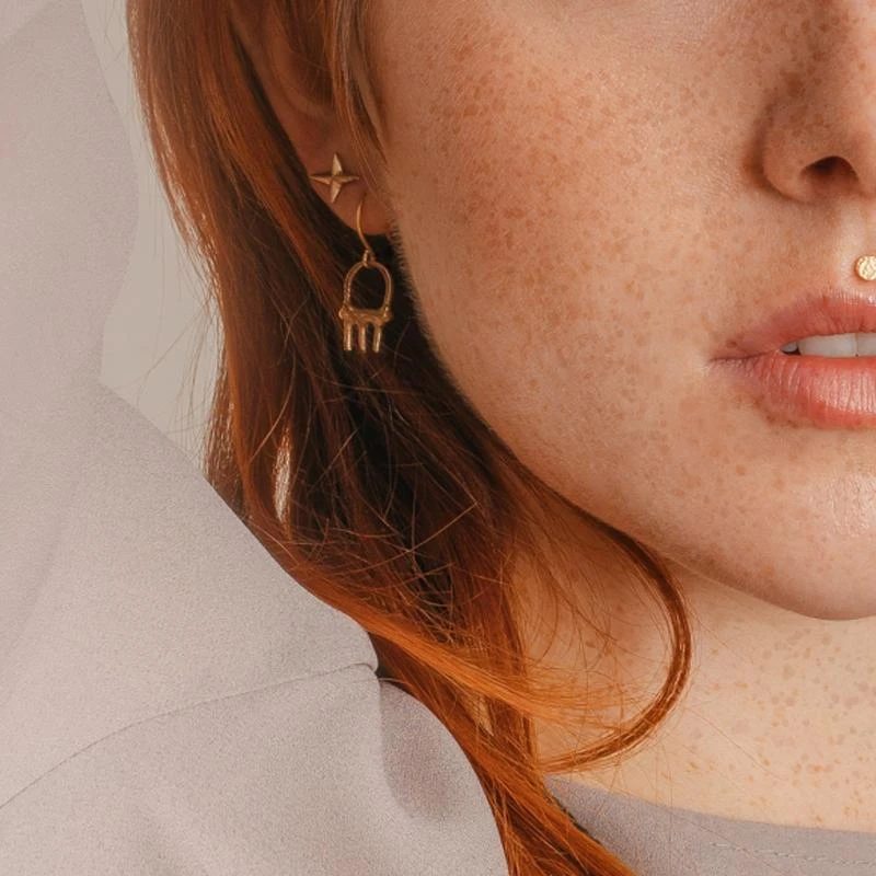 Beautifully minimal brass earrings designed with a small arc and three vertical lines, making them a perfect accessory for any occasion. Hooked ear posts complete the piece.