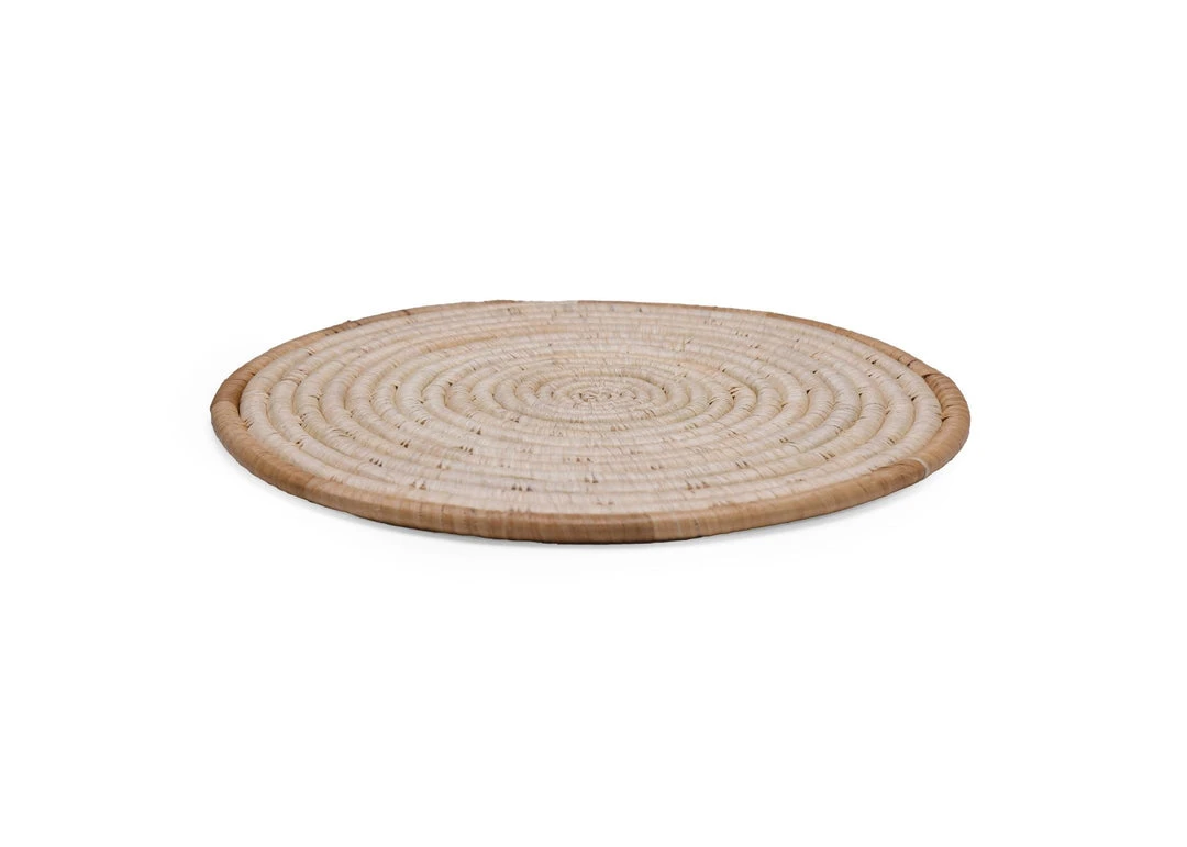 These versatile, textured trivets were made by groups of women in small cooperatives across rural areas of Uganda in an ethical, fair trade environment. They weave together sweetgrass and raffia using a sewing needle to achieve these intricate discs.