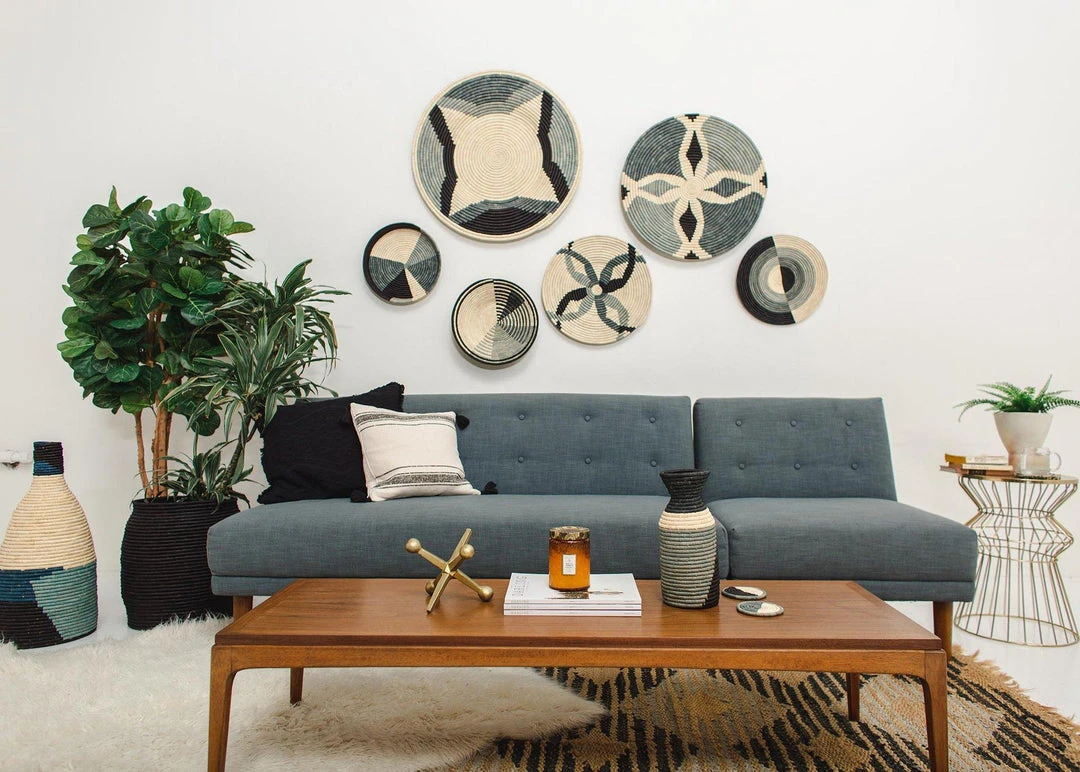 Style it in any room for a globally inspired feel. This beautiful wall plate is the perfect size as a stand alone piece or pair it with plates and trays for the cool color blocked family to create an eye-catching basket wall. All products are made by hand with love and vary slightly in color and size.