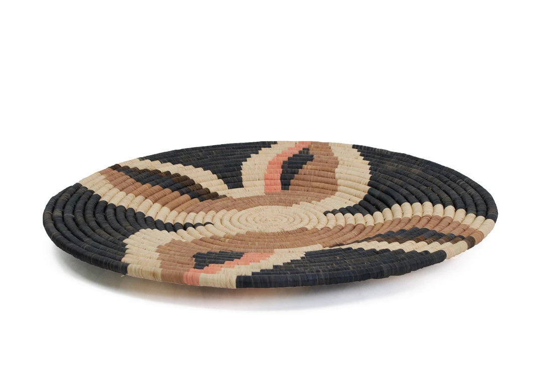 This handwoven plate was made in a fair trade environment and is stunning as a wall decoration or a charger. Group several woven pieces together to create a dynamic look in your home. Crafted by women artisans who use timeless weaving traditions.