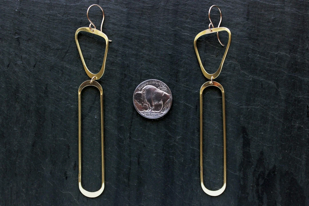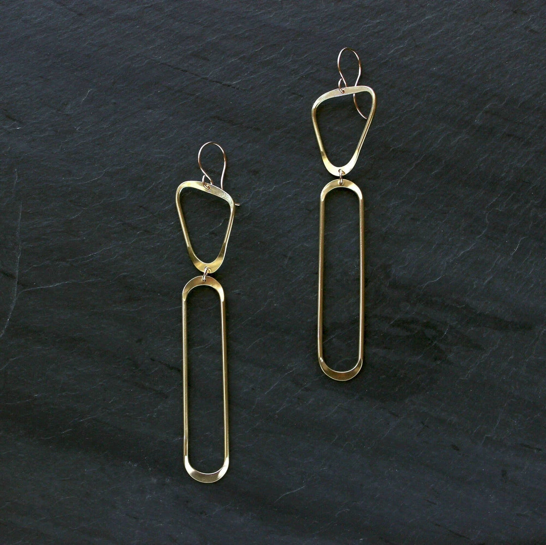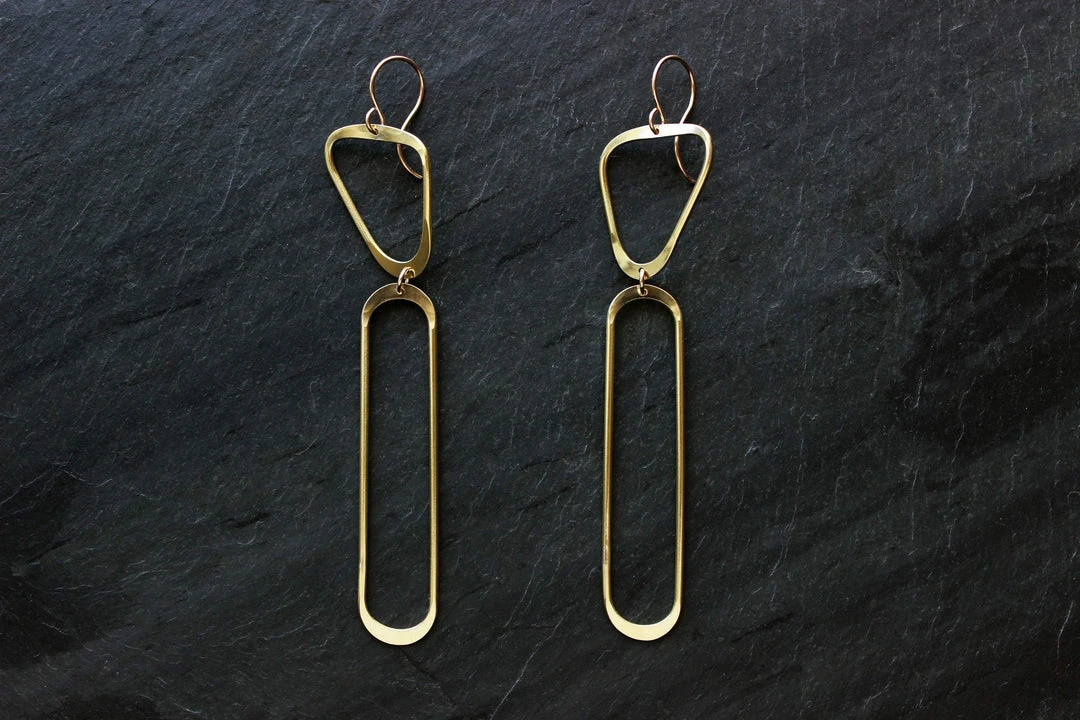These architectural statement earrings are sculpted and carved in wax by hand, then cast. Easily dressed up for a night out or worn with a t-shirt and jeans to add shine to a casual look. These shapes are free formed and may vary subtly.