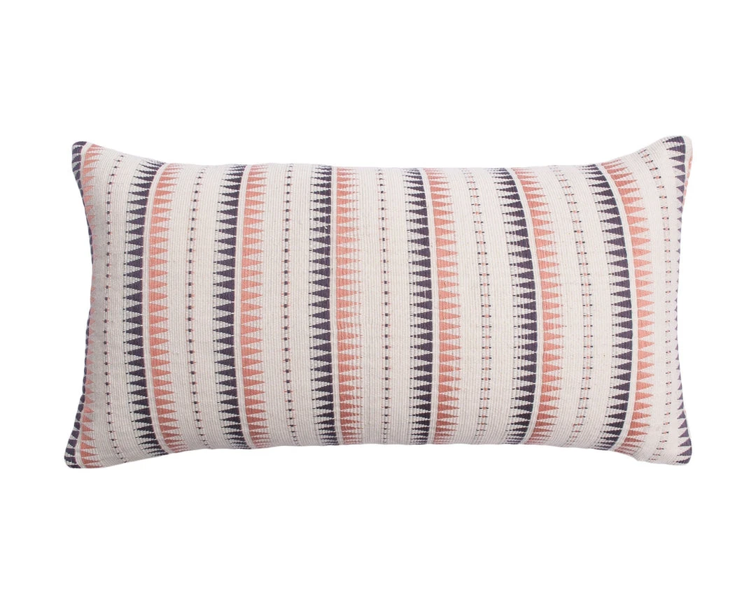 This lumbar throw pillow has been ethically handwoven by artisans in Nagaland, India, using a traditional weaving technique that is native to this region. The purchase of this handcrafted pillow helps to support the artisans and preserve their craft. Each piece may vary slightly due to the nature of handcrafted goods.