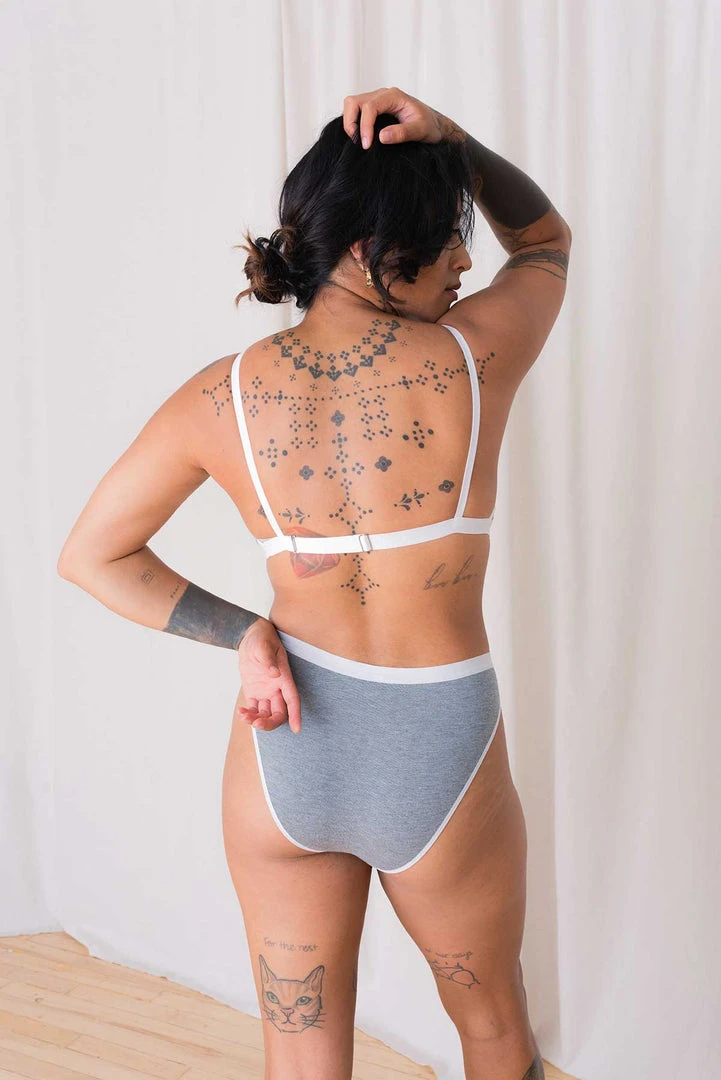 The Billie Bamboo Underwear is a mid-rise, bikini style panty with soft elastic all around for added comfort. This is a classic in all the right ways, with full bum coverage, and a natural high cut around the hips to ensure the best, flattering fit through the day.