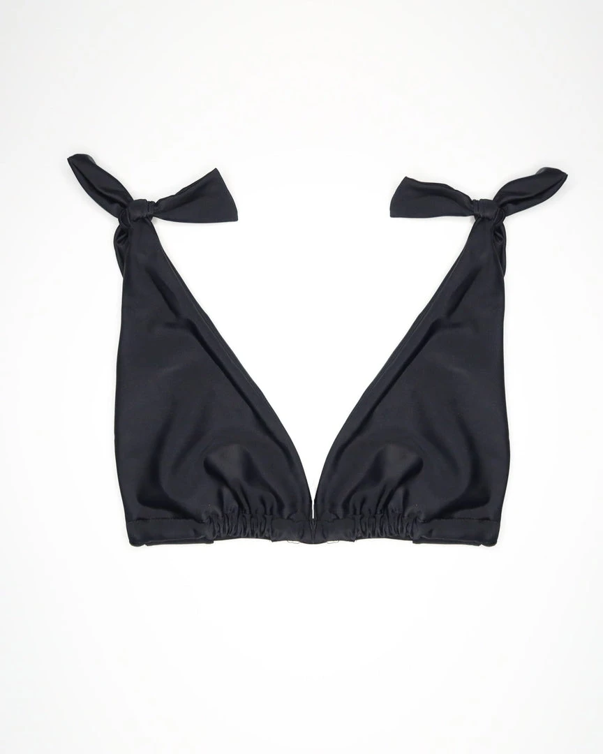 The Nikki Recycled Swim Top is a classic style that allows you to decide how much cup coverage you want and offers a perfect fit with tie shoulders. A g-hook closure with three loops lets you find the right fit for the most comfortable wear. Double layer cups with no padding allows a comfortable yet supportive fit. The Nikki Top is named after Nikki Beach in Greece.