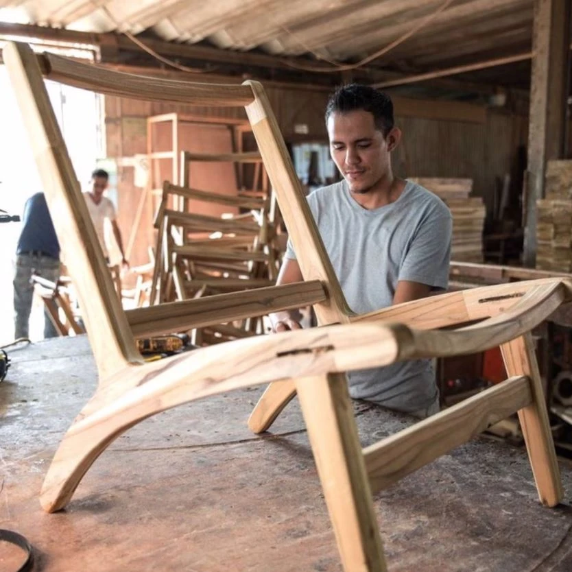 This bohemian floating sofa makes a stylish, casual, and chic addition to your entertaining and living areas. Its incredibly solid and tasteful handmade hardwood construction shows off unique joinery while the built-in end surfaces make a convenient place to place a book.