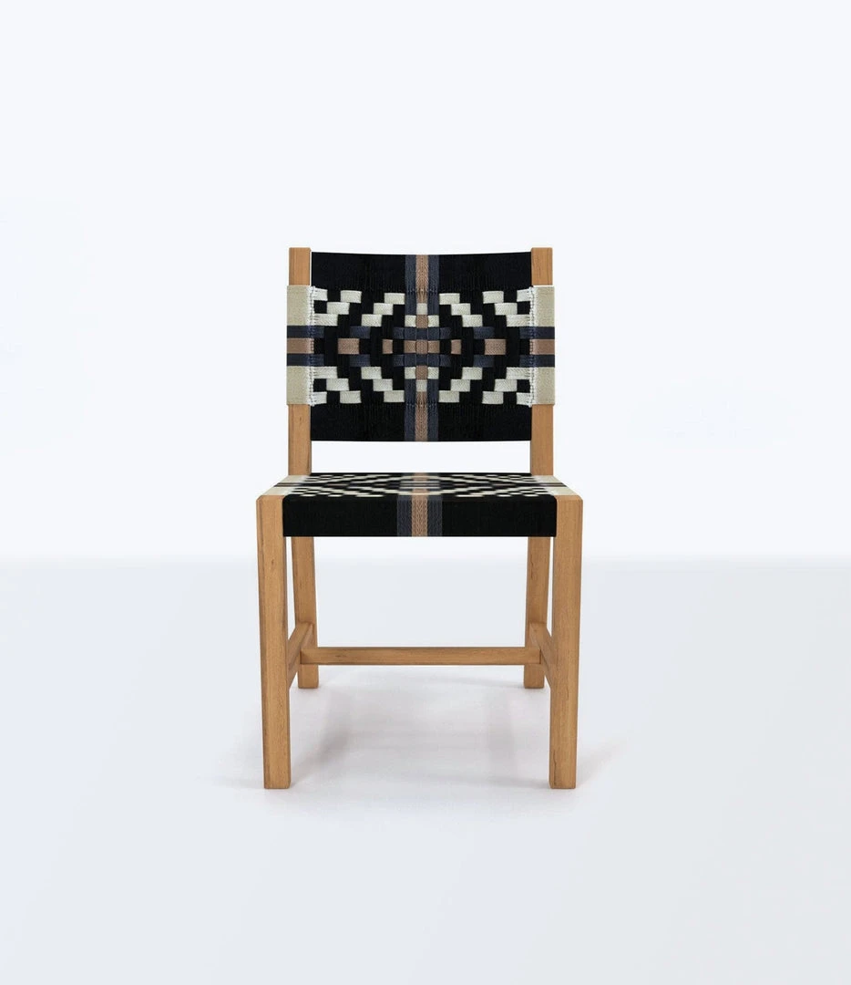 Simple yet elegant, the Monimbo Dining Chair has a solid wood frame and hand-woven seat and backrest, adding color and handmade craftsmanship to any dining space.