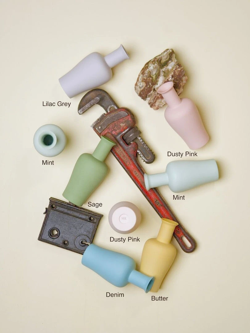 These sweet, little vases add a cheery pop of color to your desk, windowsills, and countertops. Pick your favorite color to style on it’s own for a delicate touch, or mix and match colors and mini vase styles to create a dynamic display.