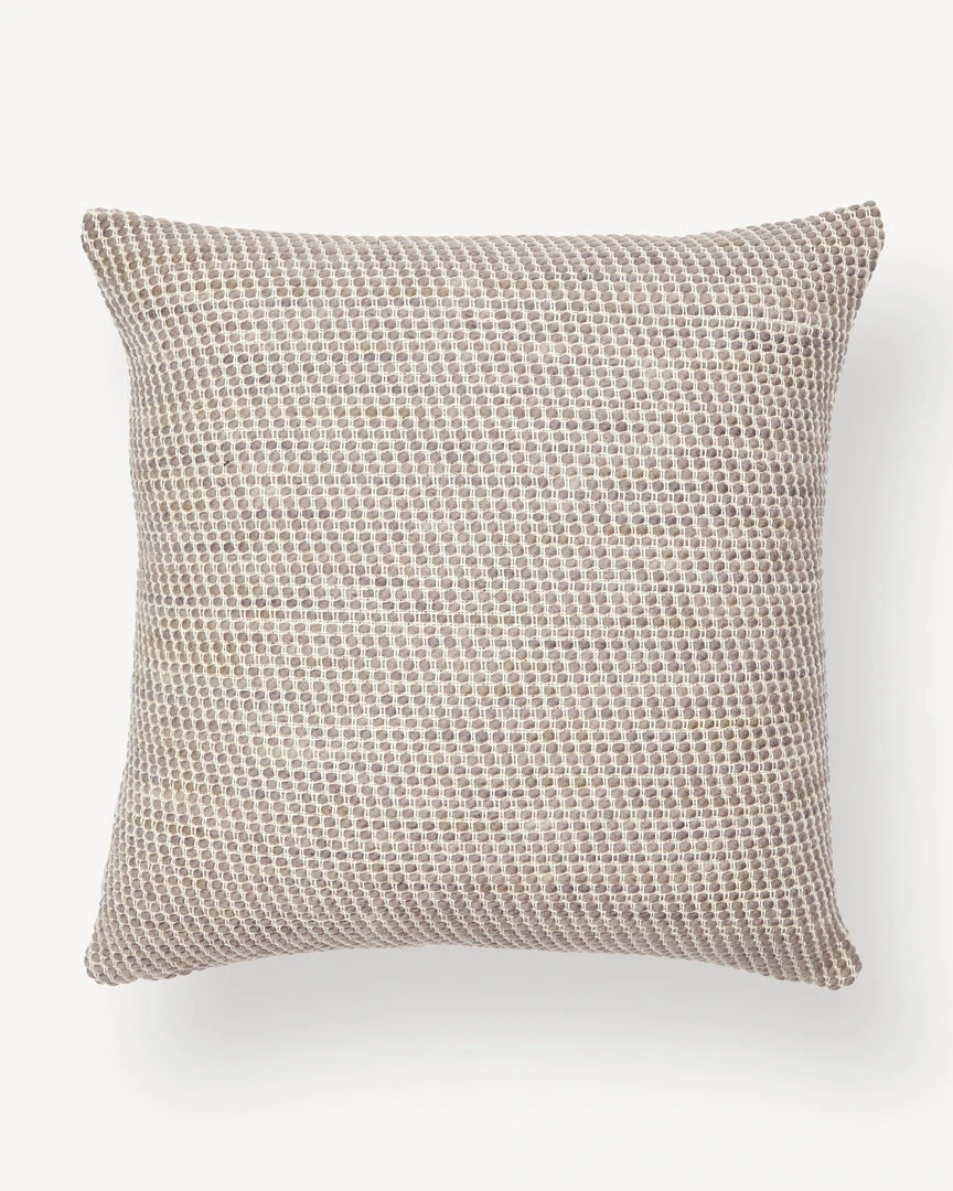 The texture of the Sheila Throw Pillow was inspired by the ruins of Huaca Pucllana and was named after Sheila Hicks. An easy way to incorporate texture into any room. The neutral fog color is 100% natural, derived from plants and flowers.