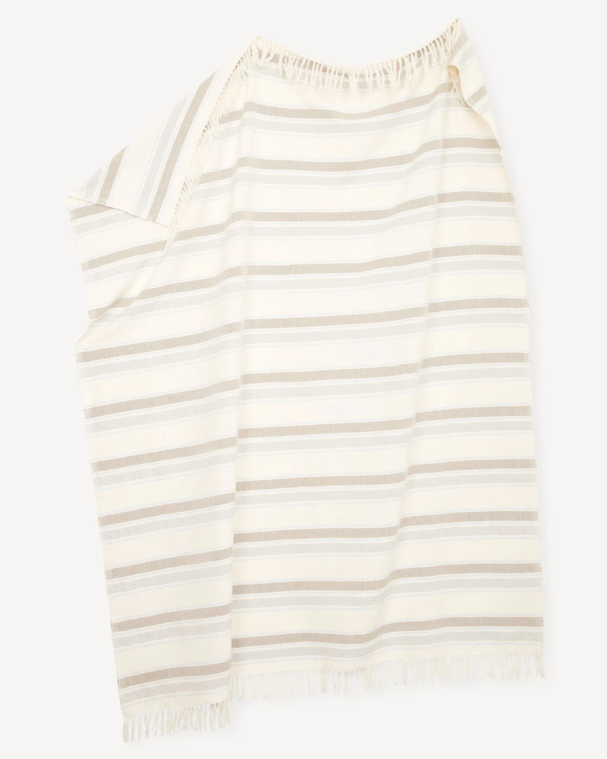 With cool, neutral tones, The Sky Stripe Throw is perfect for your living room, bedroom, or picnic in the park. Cozy enough to bring home and lightweight enough to take on your next adventure. Handwoven in partnership with a family-run cooperative in Mitla, Mexico. Due to the nature of handcrafted goods, slight variations are embraced.