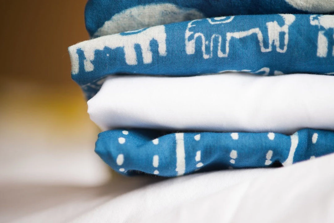 The Dabu dresses are loose fitting & comfortable. Designed to pair with tights, jeans, shorts, our dabu pants or sweatpants. The fabric in the Dabu collection is made with hand carved wooden blocks dipped into a mud paste to create a resist print. The fabric is then dipped into an indigo bath. This process is traditional to Indian textiles.