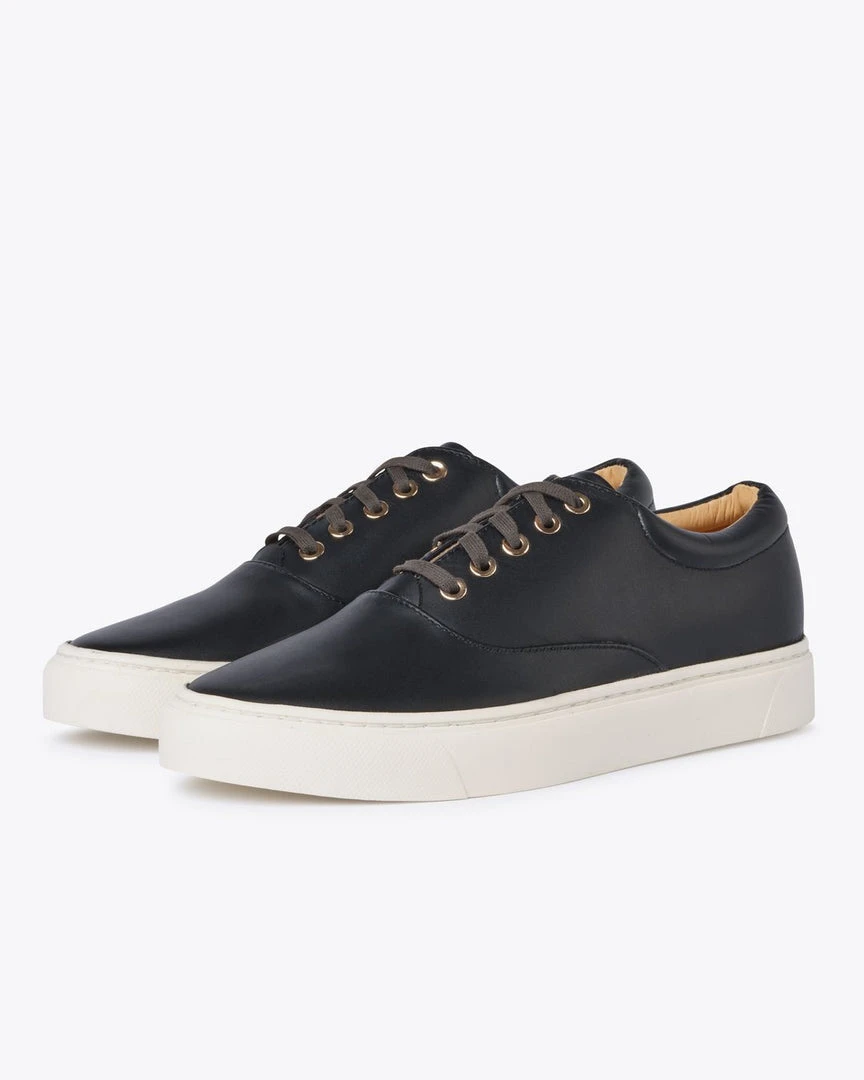 An elevated take on a classic sneaker style, the Elayna Leather Sneaker is handmade in León, Mexico and features a Vibram sole, rose gold eyelets, and waxed cotton laces.