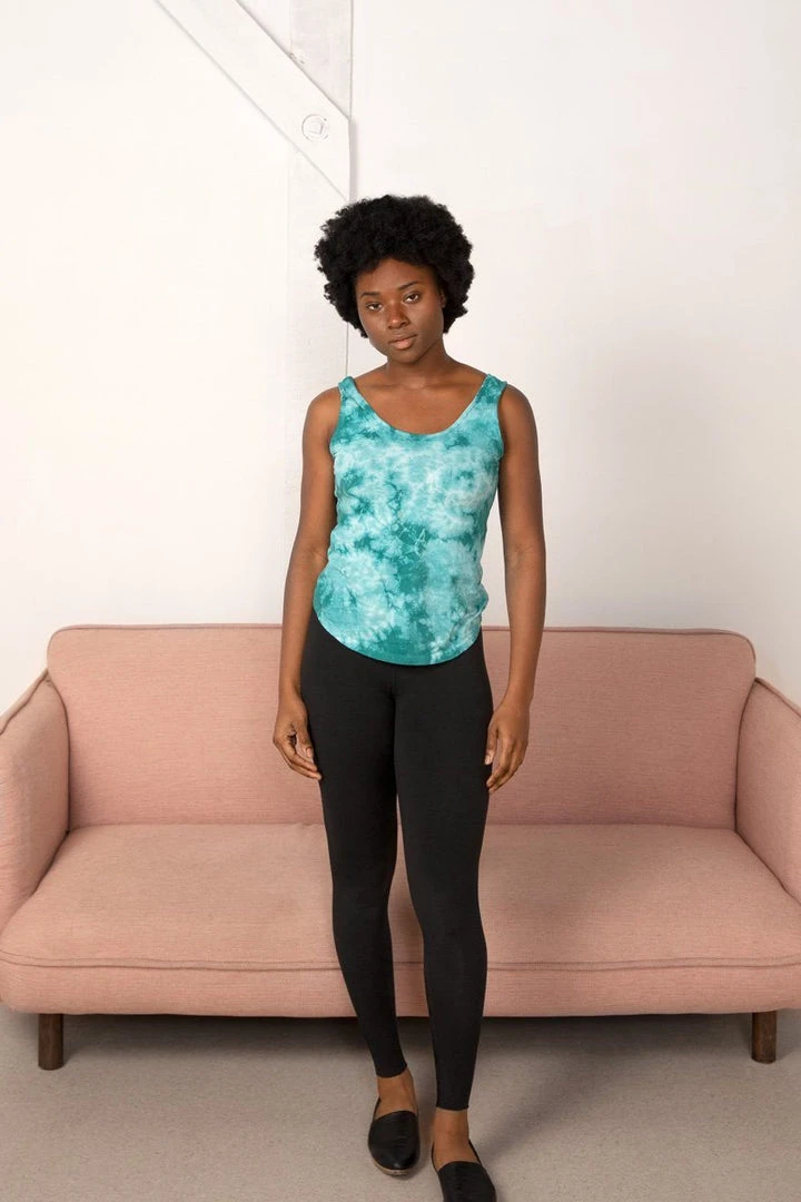 The Emily tank is the perfect length for tucking, tying, and layering. Featuring a low scoop neck in the front and the back and nice wide straps. Keep it simple and pair it with a solid or have a little fun with a bold print. Made from a soft, airy organic cotton jersey, that will keep you comfy all year round. The tie-dye pieces are created using a hand-done cloud wash technique, which means each and every garment is unique.