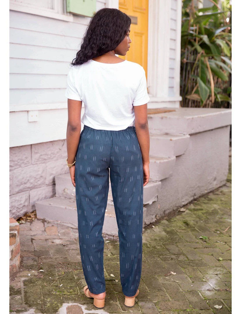 The Admiral Pants feature an elasticized waistband for easy sizing and ultimate comfort. The nice deep pockets in the front and slight tapering at the bottom of each leg, hitting at the ankle, make for a darling addition to your ethical wardrobe. Pair them with a simple t-shirt or your favorite graphic tee for a streamlined and sophisticated look. Due to the handmade nature of these products there may be a 5-10% shade variation from the picture of the garment to the actual product you receive.