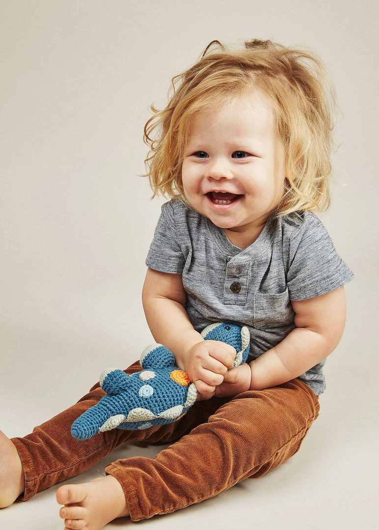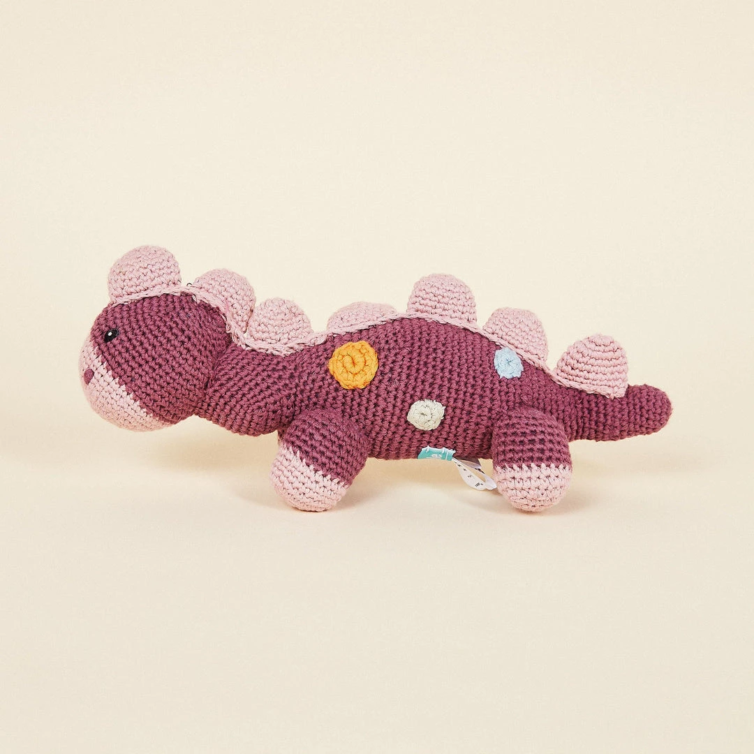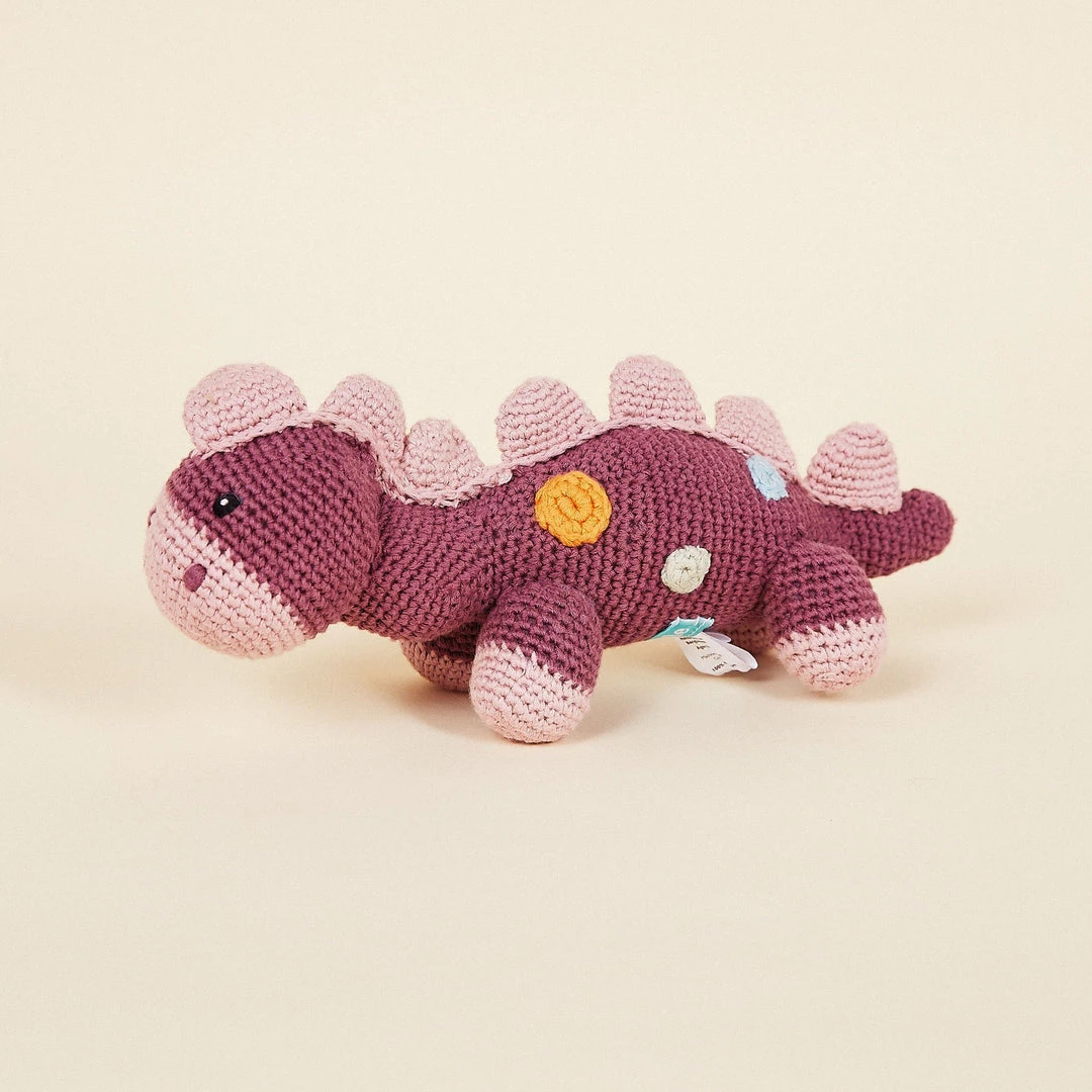 These dinosaur shaped rattles are handcrafted with care using organic cotton, making them safe for play. They’re soft in your baby’s hands and entertain while developing motor and cognitive skills.