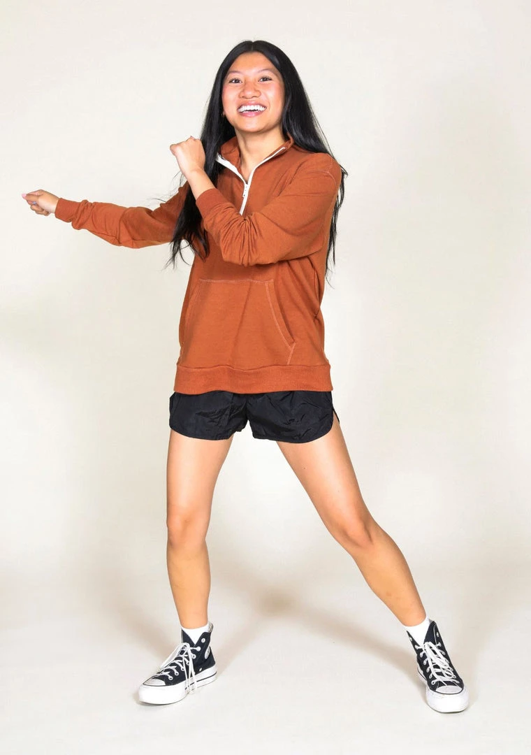 The Frances Sweatshirt is a light sweatshirt layer that’s gentle on the skin and designed to keep you comfy all day long. This sweatshirt is made from a blend of Tencelâ„¢ and Organic Cotton French Terry, giving you the silky-smooth feel of Tencelâ„¢ and breathability of soft cotton.Â