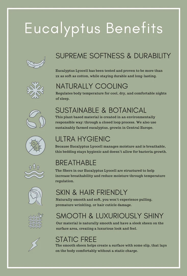 Ultra cooling, soft eucalyptus is like silk, but more durable (and vegan). Each of Sijo’s items is created sustainably and Oeko-Tex certified, meaning there are no harmful chemicals used and that all components meet strict guidelines. Tencel Eucalyptus has been tested to be more than 2x as soft as cotton. Forest Tencel Eucalyptus duvet available here.
