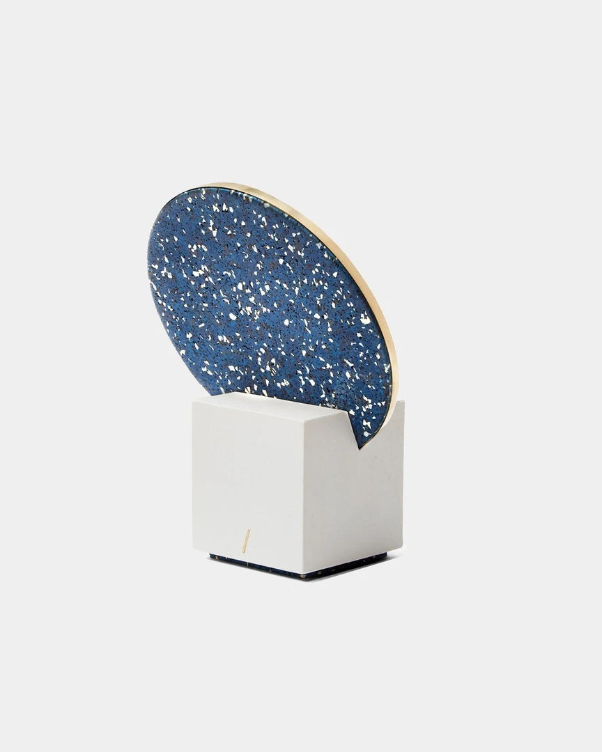 Cube base with 6″ round mirror, brass edges and rubber backing. The perfect addition to your desk or vanity. Packed and shipped in a protective box ready for gifting.