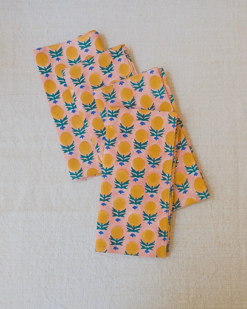 The Kesya Linen Napkins are hand block printed by master artisans in a small village near Jaipur. This design is inspired by the romantic, poetic feel of the city of Udaipur. Subtle nuances are to be expected with handcrafted textiles.