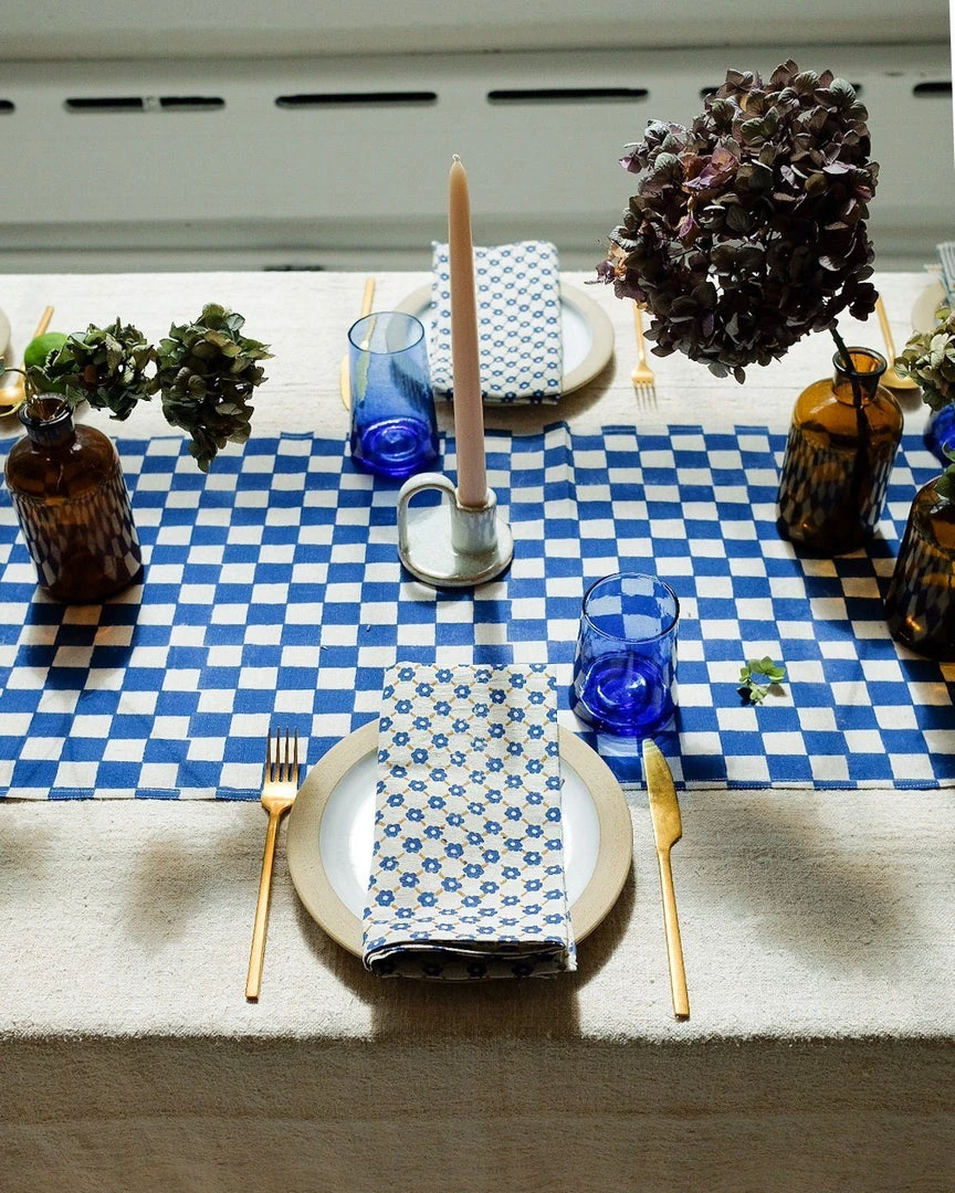 The Pia Linen Napkins are hand block printed by master artisans in a small village near Jaipur. This design is inspired by the romantic, poetic feel of the city of Udaipur. Subtle nuances are to be expected with handcrafted textiles.