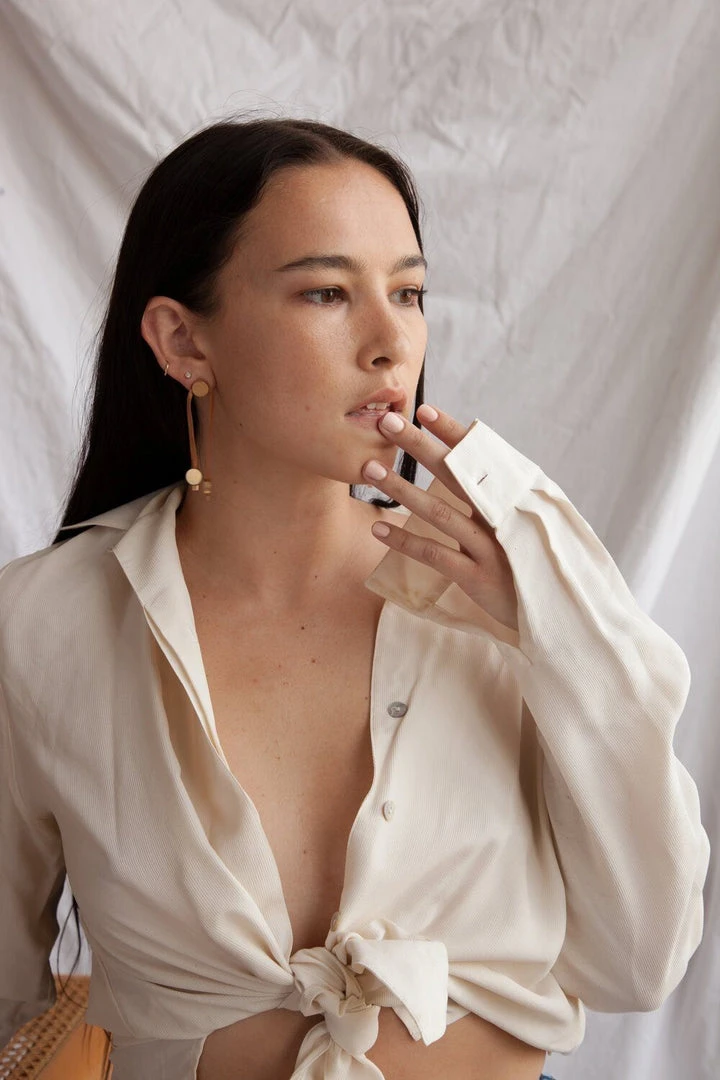 Deco-esque arcs fall from vintage brass discs. A minimalist version of a statement earring. These earrings are hand made with brass discs, and botanically dyed silk strands finished with gilded tips. All colors (with the exception of Ebony) are achieved via botanical dyes. Due to the hand-dyed nature of this piece, slight variations in color are to be expected.