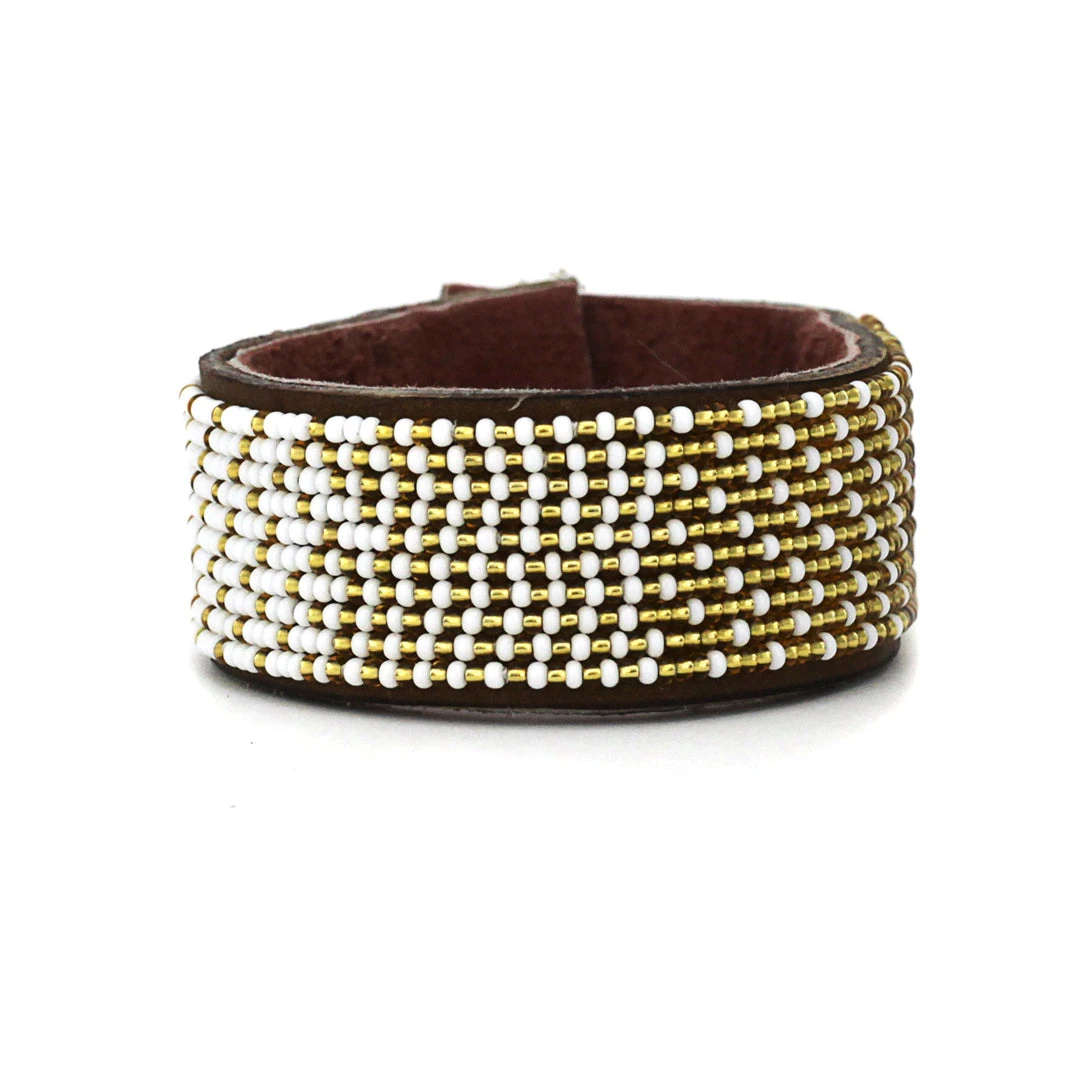 Swahili Coast Beaded Leather Cuffs are the perfect fair trade accessory. They are entirely handmade by the fairly-paid, empowered artisans of the Swahili Coast Co-operative.