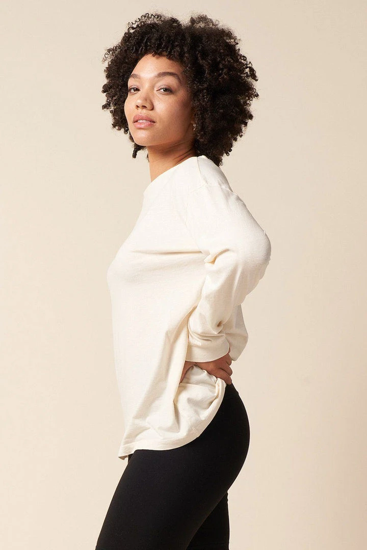 This loose fit, 90’s inspired long sleeve, gives you the space to do you. Its breathable fabric, made of recycled and organic cotton, is perfect for those throw on and go days. Free from toxic dyes, super soft feel and vintage-y wash is one of a kind.