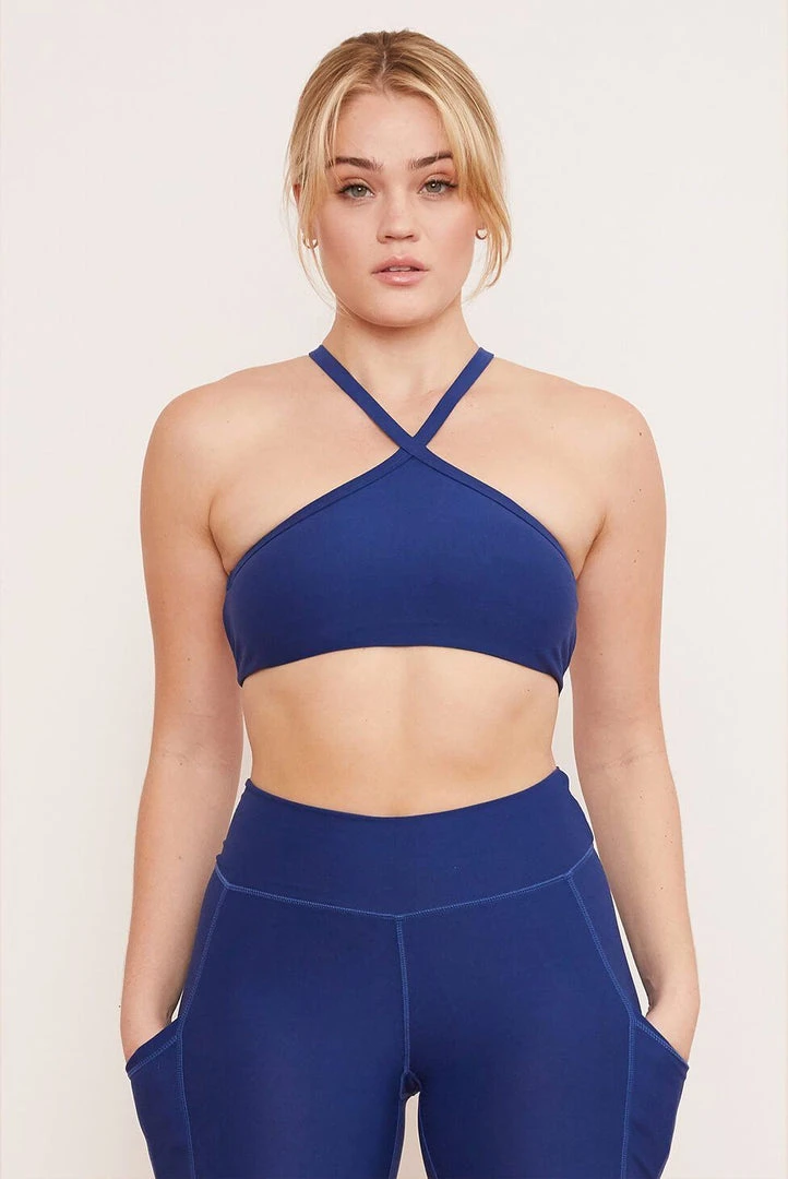 Featuring a high y-neck in front and a sexy, strappy back, this style is perfect for wearing on its own as a bralette or layered under one of our tanks. The perfect color to take a break from black.