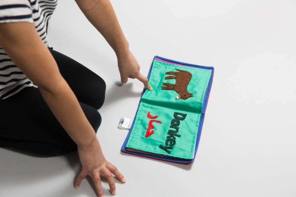 The Arabic-English Animal Book is an engaging educational tool for at home or on the go. Children learn to distinguish two languages (English and Arabic) in relation to specific animal images, developing their skills in letter recognition and in matching symbols and sounds.