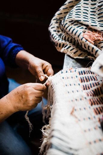 This blanket features multiple weave variations and fun textured tassels. Finished with gorgeous macramé accent knots. This blanket is elegant yet playful and is a luxurious, ethical blanket to enhance any bedroom or living space.
