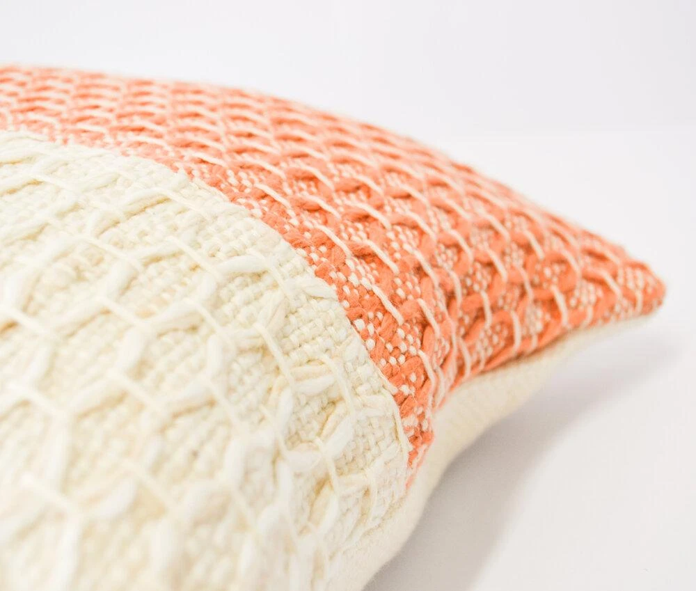 This two toned lumbar diamond weave guayaba pink and cream pillow, is a great way to add color and texture without being too bold.